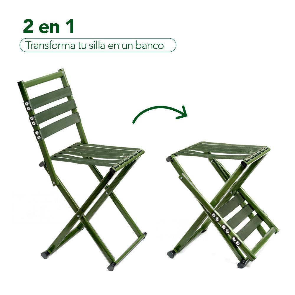 Disfruta de la comodidad y practicidad en cualquier lugar con la silla plegable 2 en 1. Diseñada para quienes aman las actividades al aire libre, esta versátil silla es perfecta para la playa, el jardín, el camping o tu terraza. Su diseño innovador permite convertirla fácilmente en un banco, adaptándose a tus necesidades. Además, es plegable lo que facilita su transporte y almacenamiento.